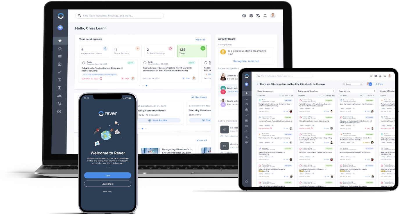 Rever empowers operators to perform and improve daily work, providing the insights to uncover hidden losses, replicate best practices, and prove financial impact.
