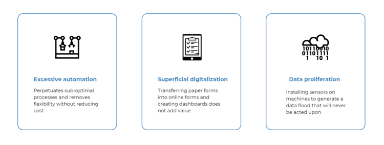 This approach is not wrong in itself. But it gives the false illusion of becoming digital without actually improving workflows, solving problems, increasing collaboration, or thinking about how the massive amount of data that is now digital can be used to gain insights and make better decisions.