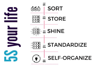 And the first step of Lean in order to achieve the goal of reducing these 8 wastes is 5S.